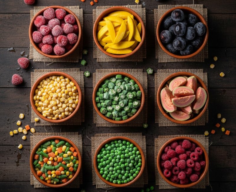 Our frozen fruits are harvested at peak ripeness and rapidly frozen to preserve their natural sweetness, aroma, and nutritional value. They are perfect for smoothies, desserts, bakery applications, and food processing industries. Likewise, our frozen vegetables are cleaned, cut, blanched where required, and frozen under strict quality control, ensuring uniform size, long shelf life, and ease of use for commercial kitchens and food manufacturers.